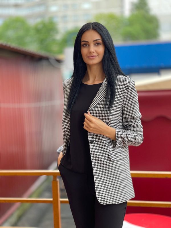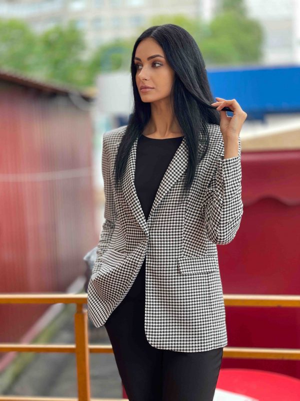 Жакет гусиная лапка. Модель полуприлегающего силуэта, на одну пуговицу. Подкладка только по передней части.