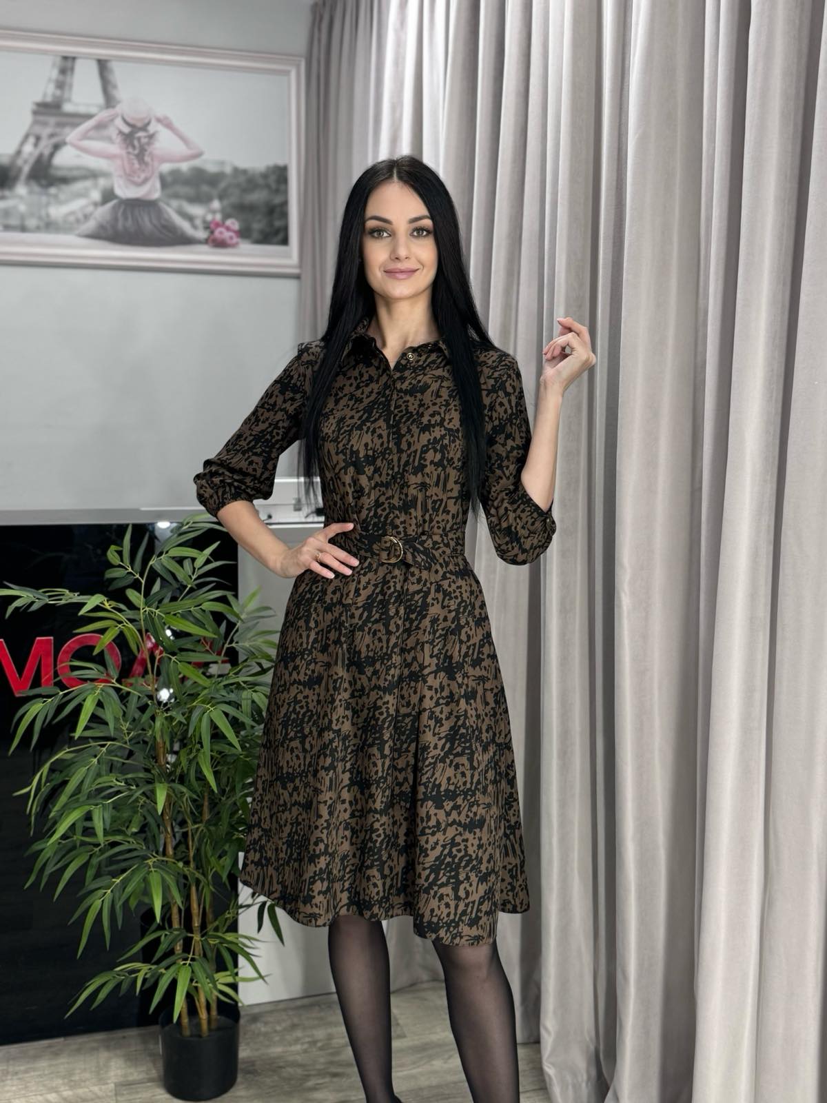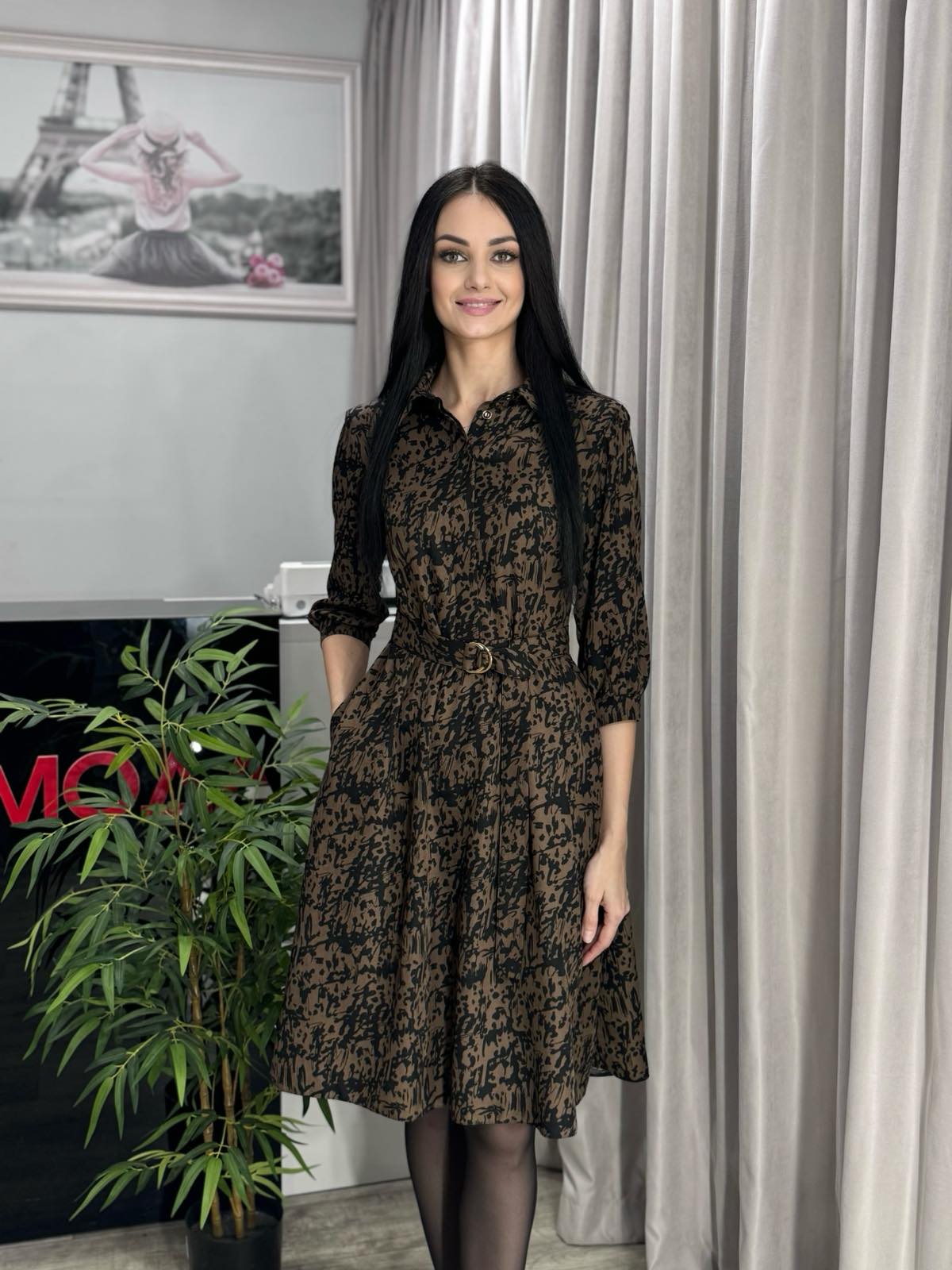 Платье в трендовых оттенках. Модель отрезная по талии с рубашечным воротником и скрытыми под планкой пуговицами до середины изделия. В боковых швах карманы, пояс из основной ткани в комплекте.